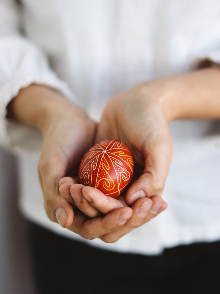 Dacă ar fi să încep cu începutul, acela ar fi alegerea oului. Întotdeauna folosesc oul de țară. Este un alb lăptos, delicat și este cea mai frumoasă variantă pentru ouăle încondeiate. Ouăle din comerț, ori galben-maro, ori foarte albe, nu le consider potrivite pentru meșteșug.